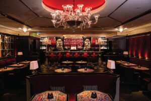 Collaborating with Fabled Studio, the project involved a comprehensive strip-out and fit-out, resulting in an interior adorned with signature red hues, gold accents, and exquisite crystal lighting. The bar offers an intimate setting for guests to indulge in a curated selection of cocktails served in Baccarat Crystal glassware