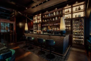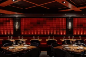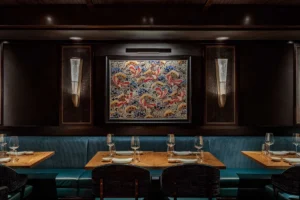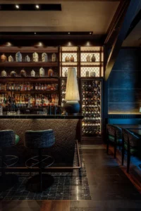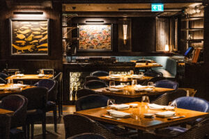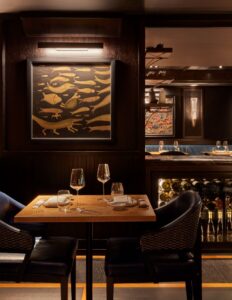 In contrast, the basement level, ‘Magma,’ is designed to represent the volcanic core, incorporating dark oak ceilings and a robata grill fueled by charcoal to create an intimate, dramatic ambiance.