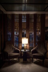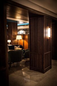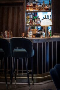 The project faced the challenge of transforming the existing space into a vibrant cocktail bar while maintaining functionality for hotel guests. The phased handover process allowed for sections of the bar to open progressively, ensuring minimal disruption and maximising usability. The final design successfully combines elegance, warmth, and practicality, offering a unique and inviting space for patrons.