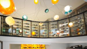 Studio Four IV’s design incorporates elements that reflect the heritage of the Royal Exchange while introducing contemporary features. The ground floor showcases a double-sided, jewel-like display cabinet, refrigerated to the perfect temperature, allowing for dynamic presentations of new and interesting vintages. The alfresco terrace offers a delightful space for patrons to sample wines by the glass, while the private tasting room on the top floor provides an exclusive environment for bespoke events.