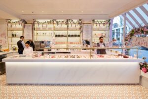 Creating a space that accurately reflects the brand’s unique style required meticulous planning and execution. Du Boulay Projects successfully delivered a café interior that delights visitors and enhances the Peggy Porschen brand.