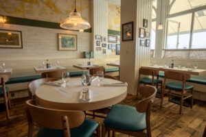 Transforming a century-old listed building into a modern restaurant presented challenges, particularly in balancing the preservation of historical features with the integration of contemporary design. Du Boulay Projects successfully navigated these complexities, delivering a space that honors the building’s heritage while providing a fresh and engaging dining experience.