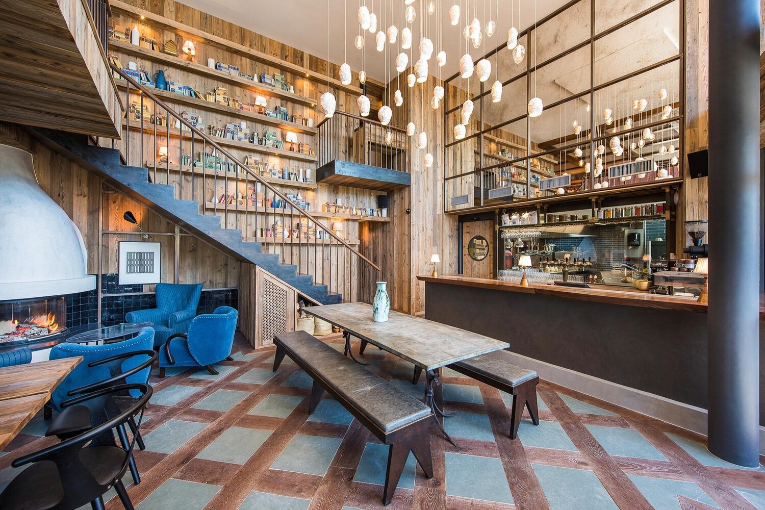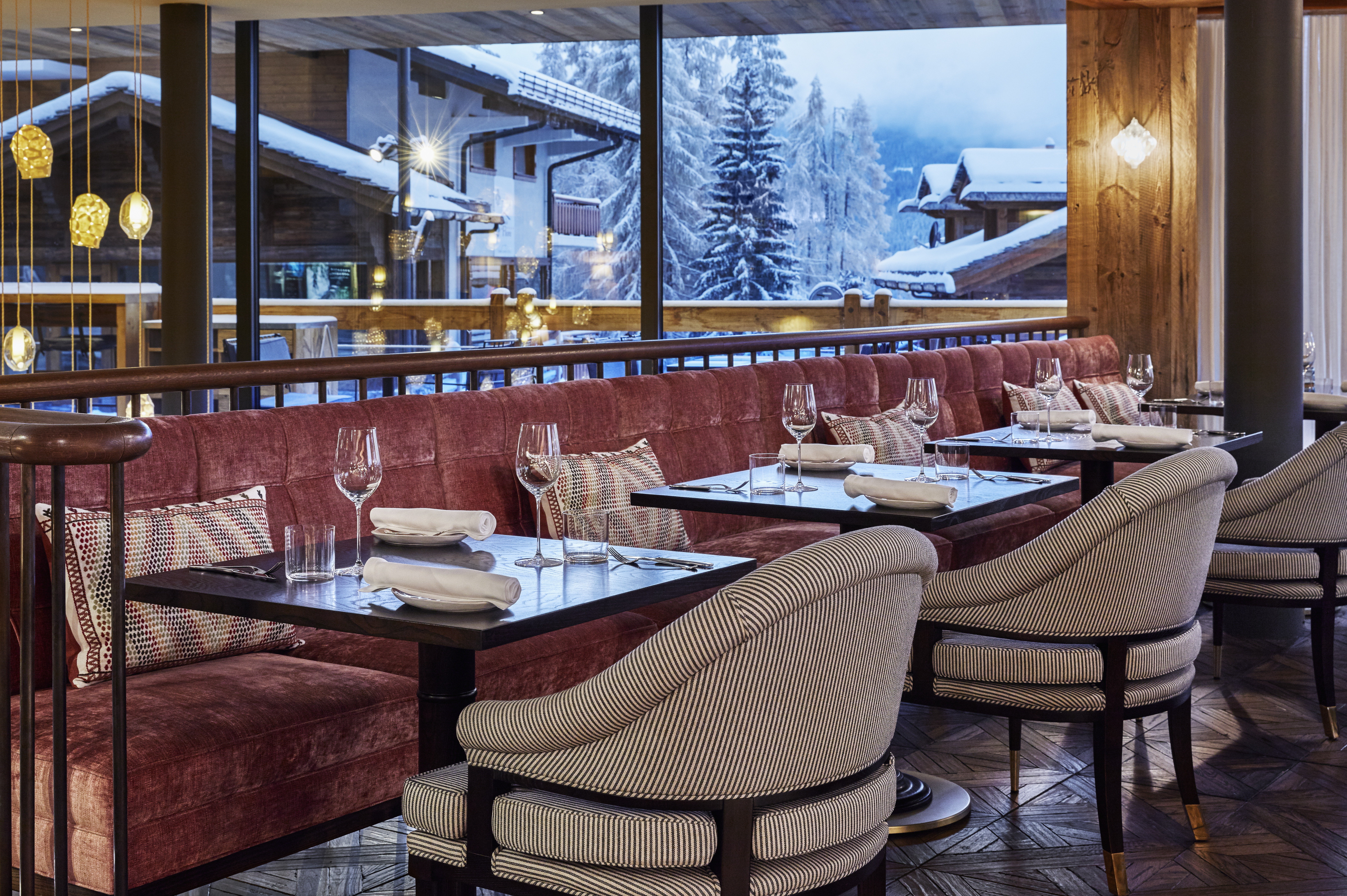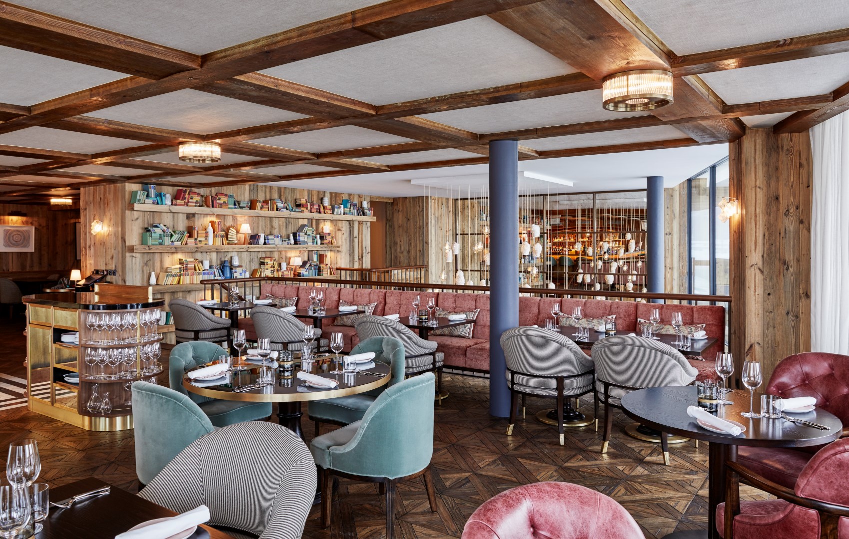 Designed by du Boulay Projects, the establishment is housed in a contemporary wooden chalet that offers panoramic views of the Alps and the surrounding valley.