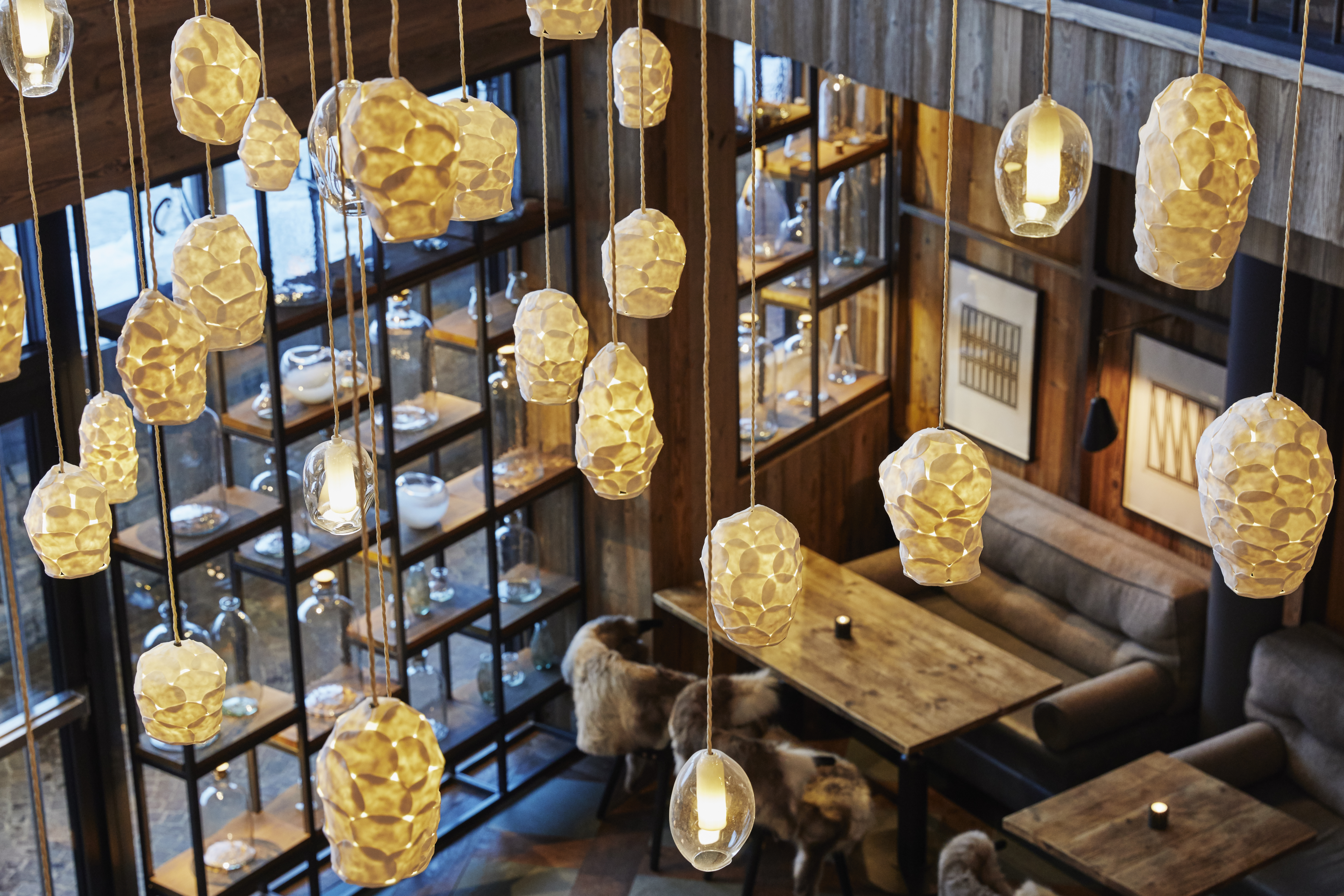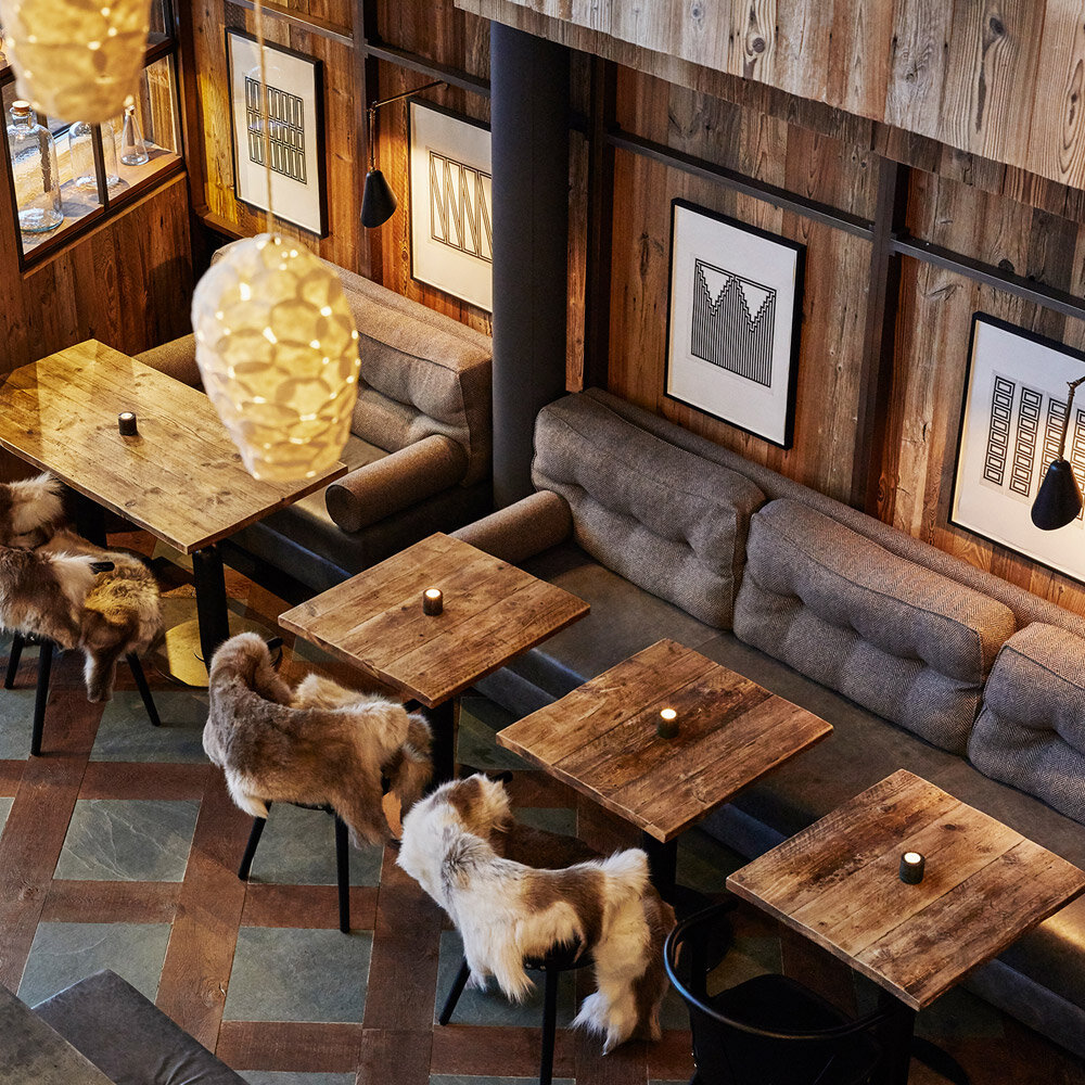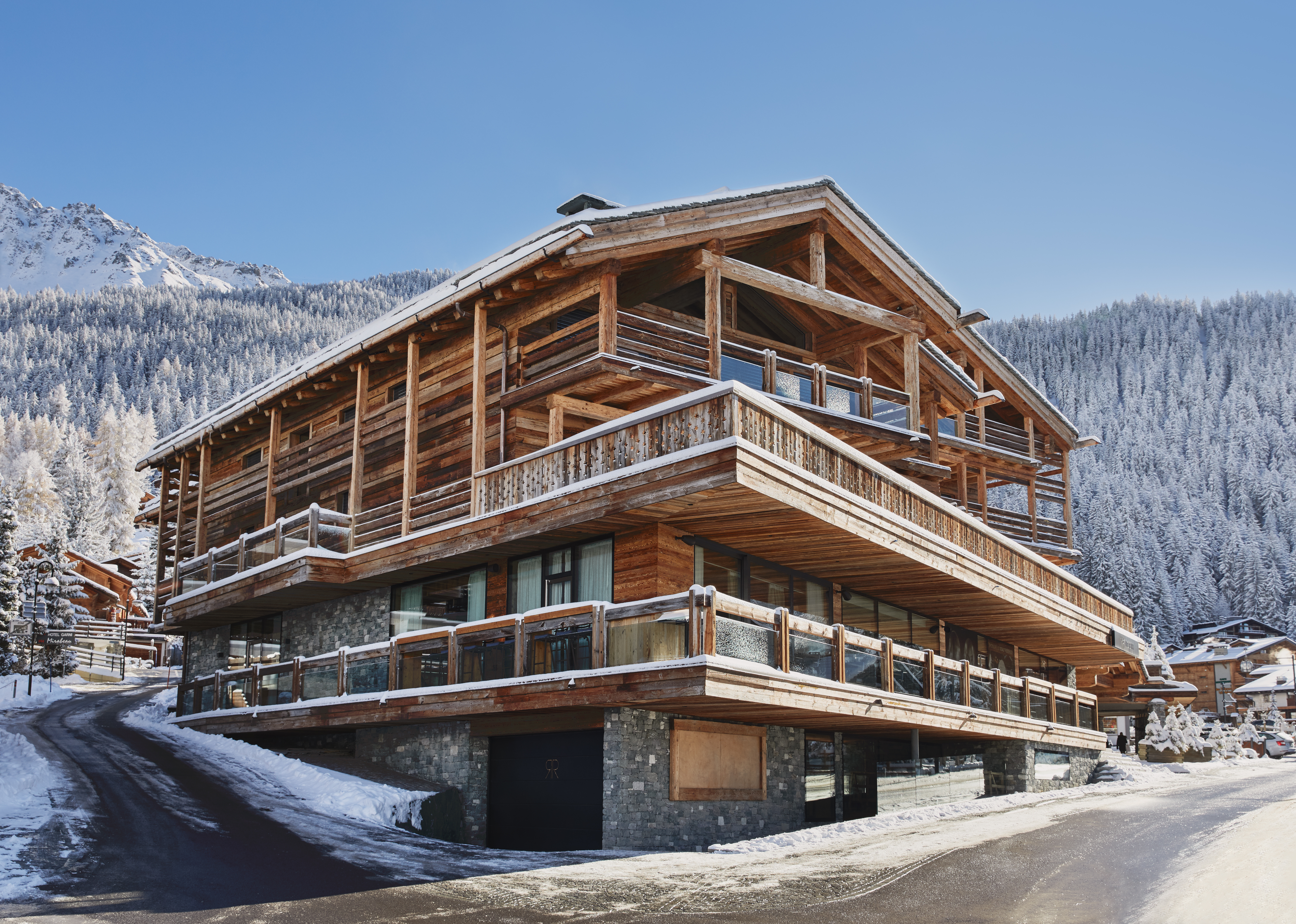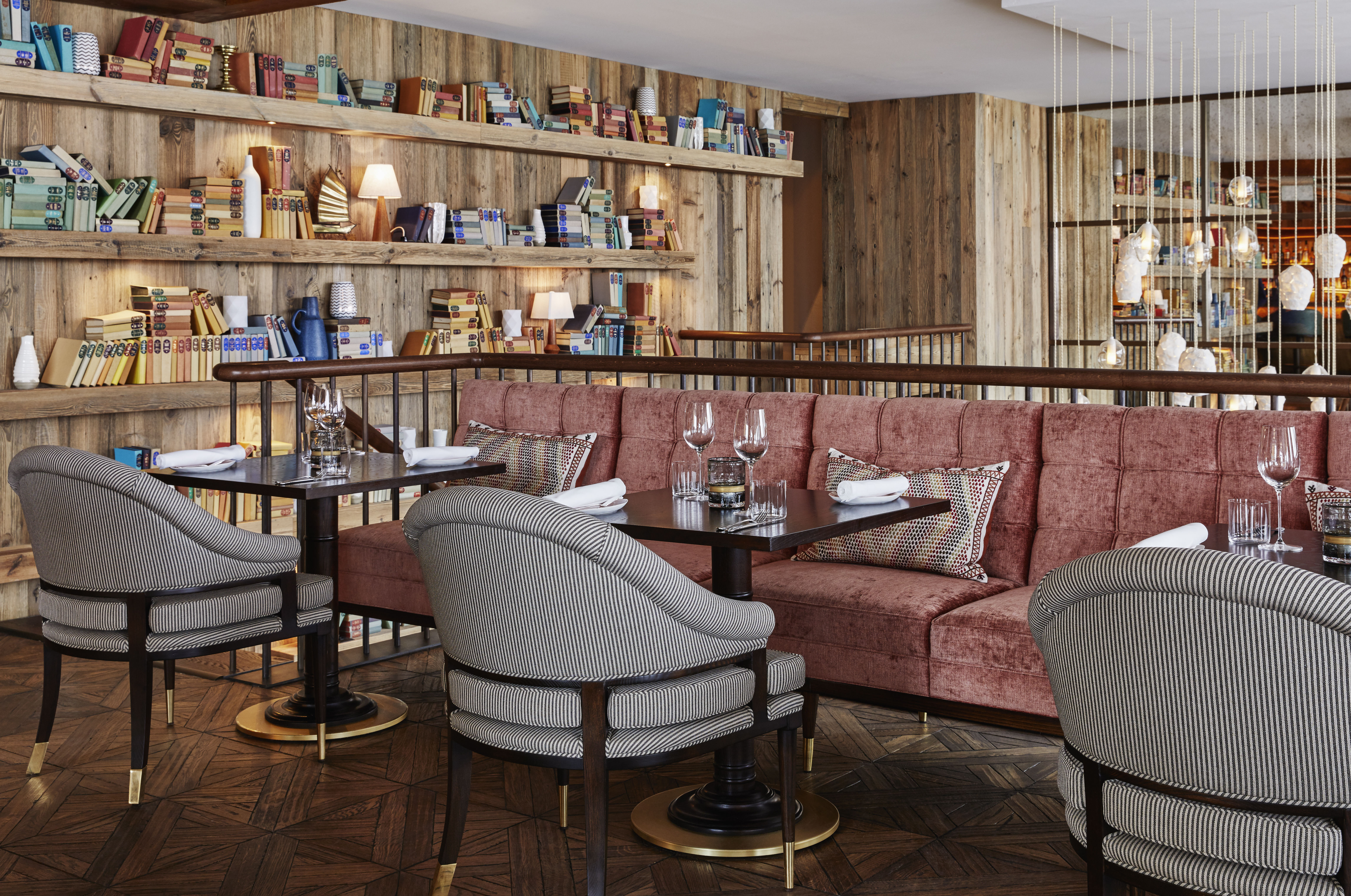 Designed by du Boulay Projects, the establishment is housed in a contemporary wooden chalet that offers panoramic views of the Alps and the surrounding valley.