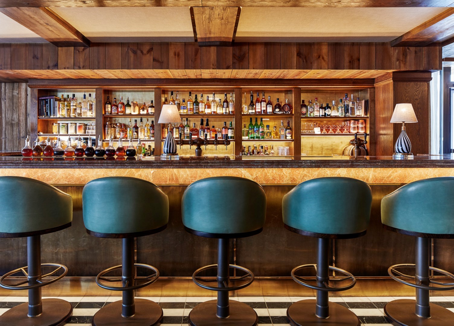 Vie Montagne’s design highlights include the expansive ground-floor bar with an open kitchen, fostering a lively and engaging environment. The first-floor cocktail bar offers a more secluded and refined setting, ideal for intimate gatherings. Throughout the chalet, the thoughtful use of natural materials and textures creates a cohesive and luxurious aesthetic that resonates with the Alpine surroundings.